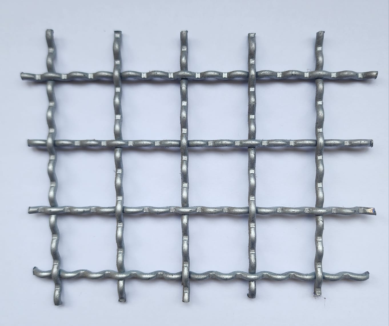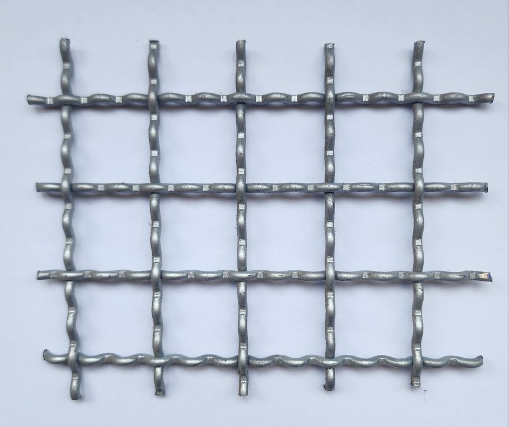 Both the warp and shute wires are crimped with extra crimps or corrugations between the points of intersection. When open area is important. Extra crimps between the intersections provide a more rigid weave and provide locking and tightness for light wires in relation to the large openings.